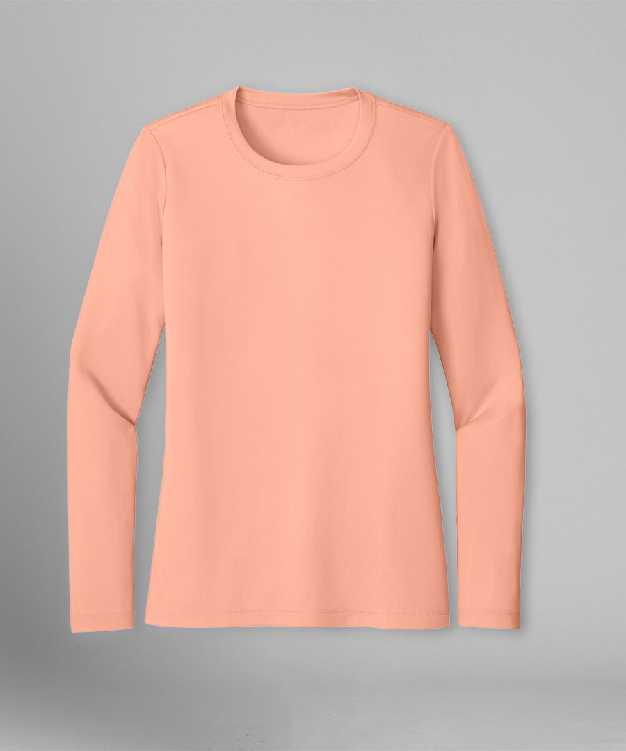 We understand that women lead active, busy lives—and their clothing needs to keep up. That’s why our performance styles are crafted with advanced fabrics and thoughtful details. Our short sleeve and long sleeve performance crew neck tee feature moisture-wicking technology and anti-odor finishes to keep you fresh all day long.