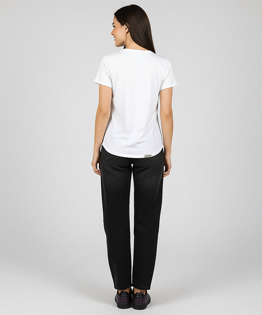 These aren’t just “nice-to-have” basics—they’re your go-to wardrobe heroes. Our tee's are easy to dress up or down, mix and match, and wear across seasons. Pair a printed scoop neck with jeans and sneakers for a casual daytime look. Throw on a plain crew neck under a denim jacket for something classic and cool.