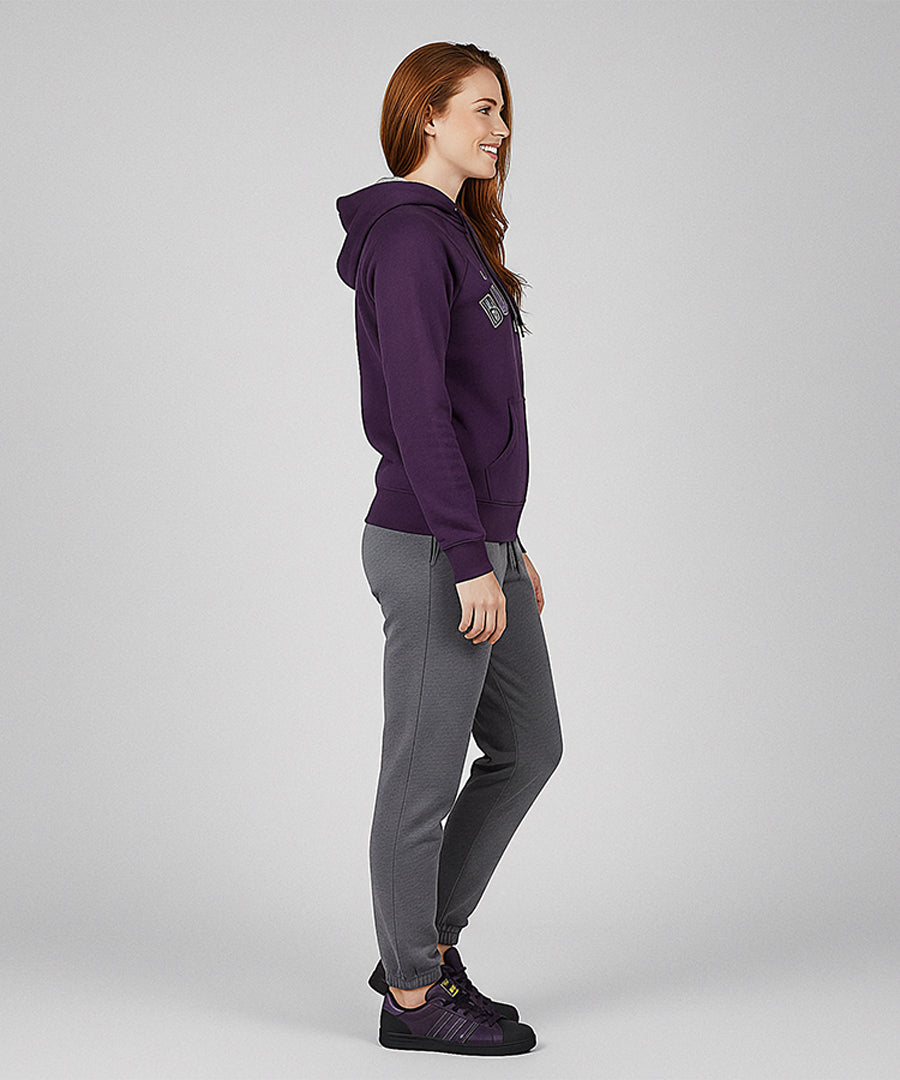 Team performance fabric sweatpants with a matching sports bra and zip-up hoodie to take your athleisure game to the next level.